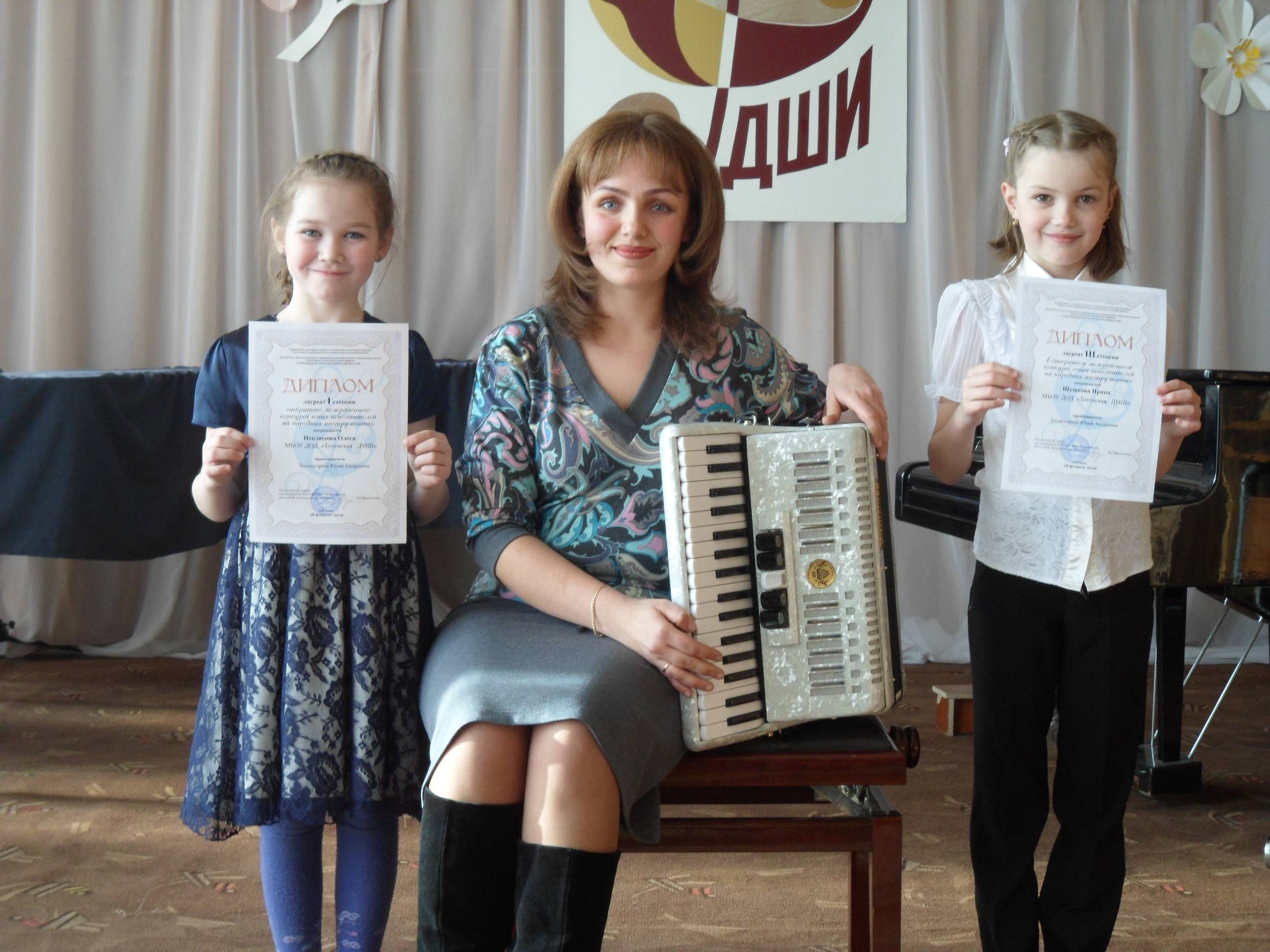 28 февраля учащиеся народного отделения Тотемской детской музыкальной школы приняли участие в открытом межрайонном конкурсе юных исполнителей на народных инструментах в г. Соколе. Юные музыканты из Сокола, Кадникова, Кадуя, Верховажья, Сямжы,Усть-Кубенского, Харовска, Тотьмы, с. им. Бабушкина исполняли музыкальные произведения на баяне, аккордеоне, домре, балалайке,гитаре.